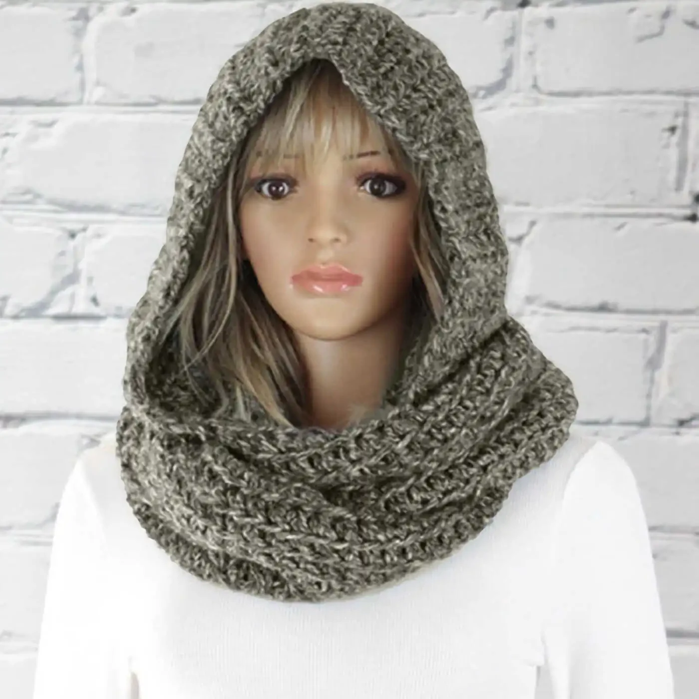 Visland Hooded Scarf - Women Winter Woolen Knitted Scarf
