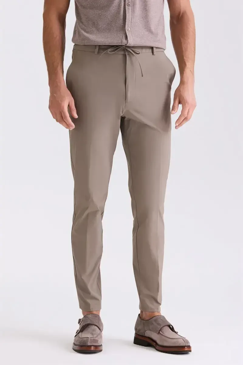 Meet the Visone Comfort Fit Elastic Waist Jogger Pants! These pants are poised to become a staple in your wardrobe, offering the perfect blend of comfort and style. Thanks to its special fabric blend that offers all-day comfort, it will accompany you both while relaxing at home and spending an active day outside. The stylish Visone color easily adapts to all kinds of combinations, while the comfort fit cut does not restrict your freedom of movement. The elastic waistband design provides a comfortable fit all day long while completing the modern jogger style.These pants are made of high quality materials. The 87% Nylon content increases the durability of the pants, while the 13% Elastane content provides elasticity, allowing them to fit your body perfectly. The breathable structure of the fabric prevents sweating and helps your skin stay dry all day long. Thanks to this, it can be easily worn in all seasons.Visone Comfort Fit Elastic Waist Jogger Pants stand out not only with their comfort but also with their elegance. Ideal for daily use, you can combine these pants with sneakers for a casual look, or complete them with a stylish t-shirt and jacket to create a more stylish style. In any case, it allows you to reflect your style.The pants are also very easy to care for. Thanks to its machine washable feature, it offers practical use. The colors do not fade and it retains its shape, so you can use it like the first day for many years. These pants, which will be an indispensable part of your wardrobe, are an ideal choice for those looking for both comfort and style.The size and measurements of the mannequin can give you an idea of how the pants might look on you. The mannequin is 187 cm tall, weighs 78 kg, has a waist of 80 cm and hips of 100 cm. The mannequin is wearing size 42. This information will help you choose the correct size.Experience both comfort and style with the Visone Comfort Fit Elastic Waist Jogger Pants. These pants, which will make you feel good every moment of the day, will be one of the most loved pieces in your wardrobe.