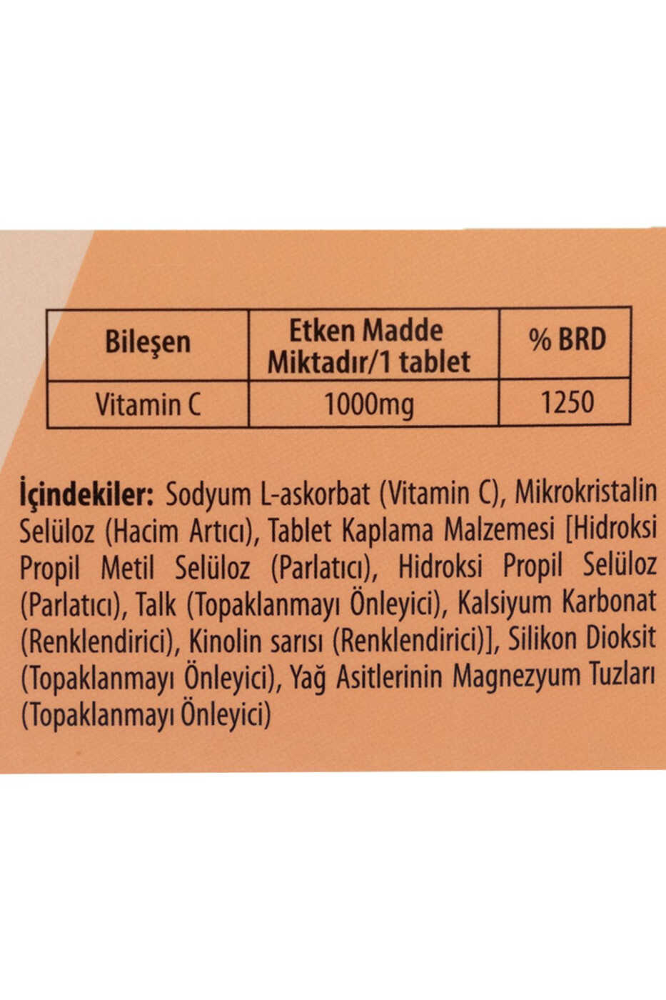 Vitamin C (Askorbik Asit) 1000 Mg, Dolgu maddesi (Mikrokristalin Selüloz), Çinko Oksit, Magnezyum Stearat, Silikon Dioksit.