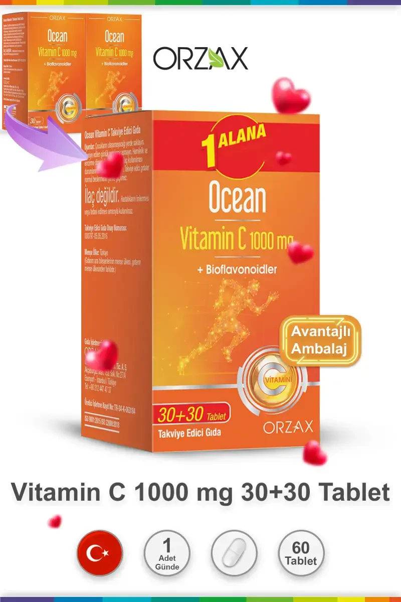 Отличное решение для удовлетворения ваших ежедневных потребностей в витамине С, упаковка витамина С 30 таблеток X2 разработана для поддержки вашей иммунной системы, защиты клеток и улучшения общего состояния здоровья. Каждая таблетка содержит 1000 мг витамина С, этот продукт защищает ваш организм от вредного воздействия свободных радикалов благодаря своим мощным антиоксидантным свойствам.