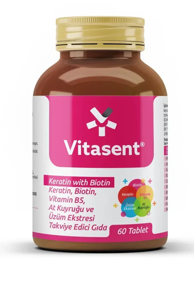 Vitasent Keratin Biotin - bu soch, teri va tirnoqlaringiz salomatligini qo'llab-quvvatlash uchun ajoyib tanlov. Sog'lom va chiroyli bo'lish uchun hoziroq buyurtma bering!