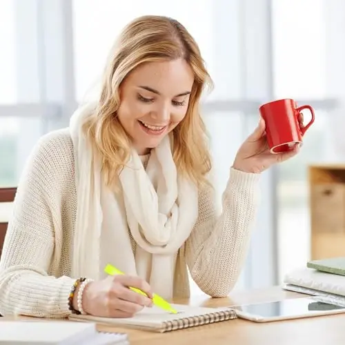 Vitoler Fluorescent Yellow Highlighters bilan qaydlarni olish va muhim nuqtalarni ta'kidlashni butunlay yangi darajaga olib chiqing! Ushbu 10 ta yorqin rangli markerlar to'plami uyda, maktabda yoki ofisda foydalanish uchun mos jonli va samarali yechimni taklif etadi. Kattalar va bolalar uchun ideal bo'lgan ushbu qalamlar o'rganish va ishlash jarayonlaringizni yanada samarali va yoqimli qilish uchun mo'ljallangan. Yorqin sariq rangi diqqatingizni chalg'itmasdan diqqatni jamlashga yordam beradi, uzoq muddatli foydalanishda ham ko'zning charchashini kamaytiradi. Shu tarzda, uzoq o'qish mashg'ulotlarida yoki band ofis kunlarida ham qulay foydalanish tajribasini taqdim etadi. Vitoler markerlari matnlaringizni jonlantirish bilan bir qatorda, qaydlaringizning tartibli va tushunarli bo'lishini ta'minlaydi. Qiya uchli dizayn sizga turli xil qalinlikdagi chizmalar chizishga imkon beradi. Nozik detallar uchun uchining o'tkir qismini, kengroq maydonlarni ta'kidlash uchun esa yon tomonini ishlatishingiz mumkin. Ushbu moslashuvchanlik yozish va chizish ehtiyojlaringizni qondirib, ijodkorligingizni qo'llab-quvvatlaydi. Yumshoq uchi qog'oz bilan aloqa qilganda silliq tuyg'u beradi, ishqalanishni kamaytiradi va yanada ravon yozish tajribasini taqdim etadi. Kvadrat shaklidagi korpus dizayni qalamlarning stol ustida qimirlamay turishini ta'minlaydi va dumalab tushishining oldini oladi. Shu tarzda, u ish joyingizning tartibli bo'lishiga yordam beradi va qalamlaringizni osonlik bilan erishish mumkin bo'lgan joyda saqlashga imkon beradi. Ergonomik dizayni tufayli uzoq muddatli foydalanishda ham qo'lingizni charchatmaydi va qulay ushlashni ta'minlaydi. Tez quriydigan siyoh formulasi surkalish va tarqalishning oldini oladi, shuning uchun qaydlaringiz toza va o'qilishi mumkin bo'lib qoladi. Ushbu xususiyat, ayniqsa, tezda qayd qilishingiz kerak bo'lgan hollarda yoki muhim hujjatlar ustida ishlaganda katta afzallik beradi. Vitoler markerlari vaqtingizni tejashga va ishingizni yanada samaraliroq bajarishga yordam beradi. Vitoler Fluorescent Yellow Highlighters shunchaki kanselyariya buyumi emas, balki o'rganish va ishlash vositasidir. Maktabda, uyda yoki sayohatda bo'lasizmi, bu qalamlar har doim siz bilan bo'lishi kerak. Bundan tashqari, yaqinlaringizga sovg'a qilishingiz mumkin bo'lgan zamonaviy va foydali tanlovdir. Do'stlaringizga, oilangizga yoki hamkasblaringizga ushbu yoqimli kanselyariya mahsulotini sovg'a qilib, ularning ham qayd olish va ta'kidlash tajribalarini yaxshilashga yordam berishingiz mumkin.