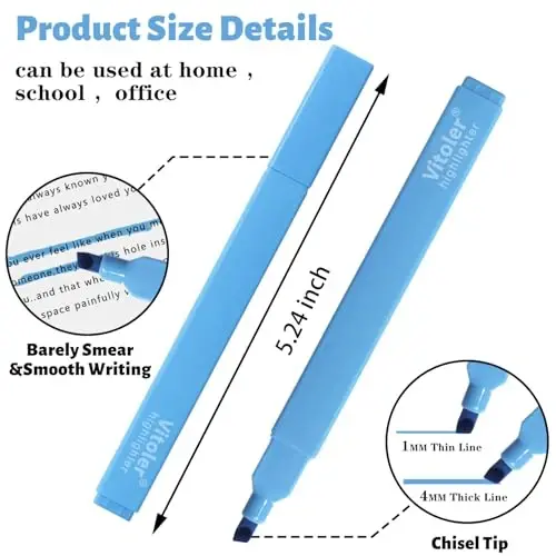Vitoler Highlighters Assorted Colors, çevre dostu malzemelerden üretilmiştir ve sağlığa zararlı herhangi bir madde içermez. Ürün, uzun süreli kullanım için tasarlanmıştır ve mürekkebi kolayca tükenmez. Kalemlerinizi uzun süre kullanabilmek için kapağını kapalı tutmanız önerilir. İnce kağıtlarda kullanırken hafif baskı uygulayarak mürekkebin arkaya geçmesini engelleyebilirsiniz. Ürün, çocukların kullanımı için uygundur ancak küçük parçalar içerdiği için yetişkin gözetiminde kullanılması tavsiye edilir.