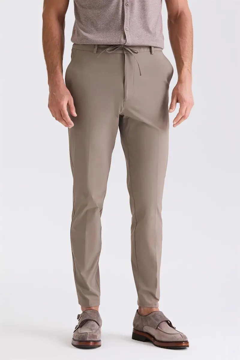 Jogger stili ve modern tasarımıyla Vizon Comfort Fit Beli Lastikli Jogger Pantolon, hem gündelik hem de daha resmi ortamlar için idealdir. Günlük giyiminizde spor ayakkabılar veya loafer'larla kombinleyebilir, daha şık bir görünüm için ise topuklu ayakkabılar veya botlarla tamamlayabilirsiniz.