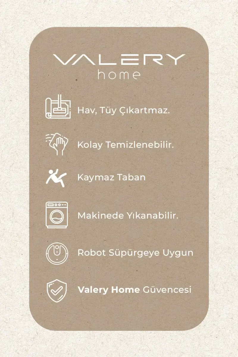 This product is sent by Valery Home. It is available in limited stock to be sold at a campaign price. A product can be sold by more than one seller. The sellers of products offered for sale by more than one seller are ranked according to the price they determine for the product, seller scores, delivery statuses, promotions on the products, whether the cargo is free or not, and whether the products can be delivered with fast delivery, and the stock and category information of the products. A maximum of 10 of this product can be ordered. Trendyol reserves the right to cancel orders over 10 units. This limit is not valid for corporate orders, and different limits may be determined for corporate orders. There is a free return option within 15 days. It can be washed in the machine at 30 degrees without spinning or by hand. It can be used in different areas such as living room, living room, kitchen, bedroom, children's room, hall and corridor. It can also be preferred as cut runner, cut carpet, plush carpet, gel carpet, round carpet, Scandinavian carpet and white carpet.