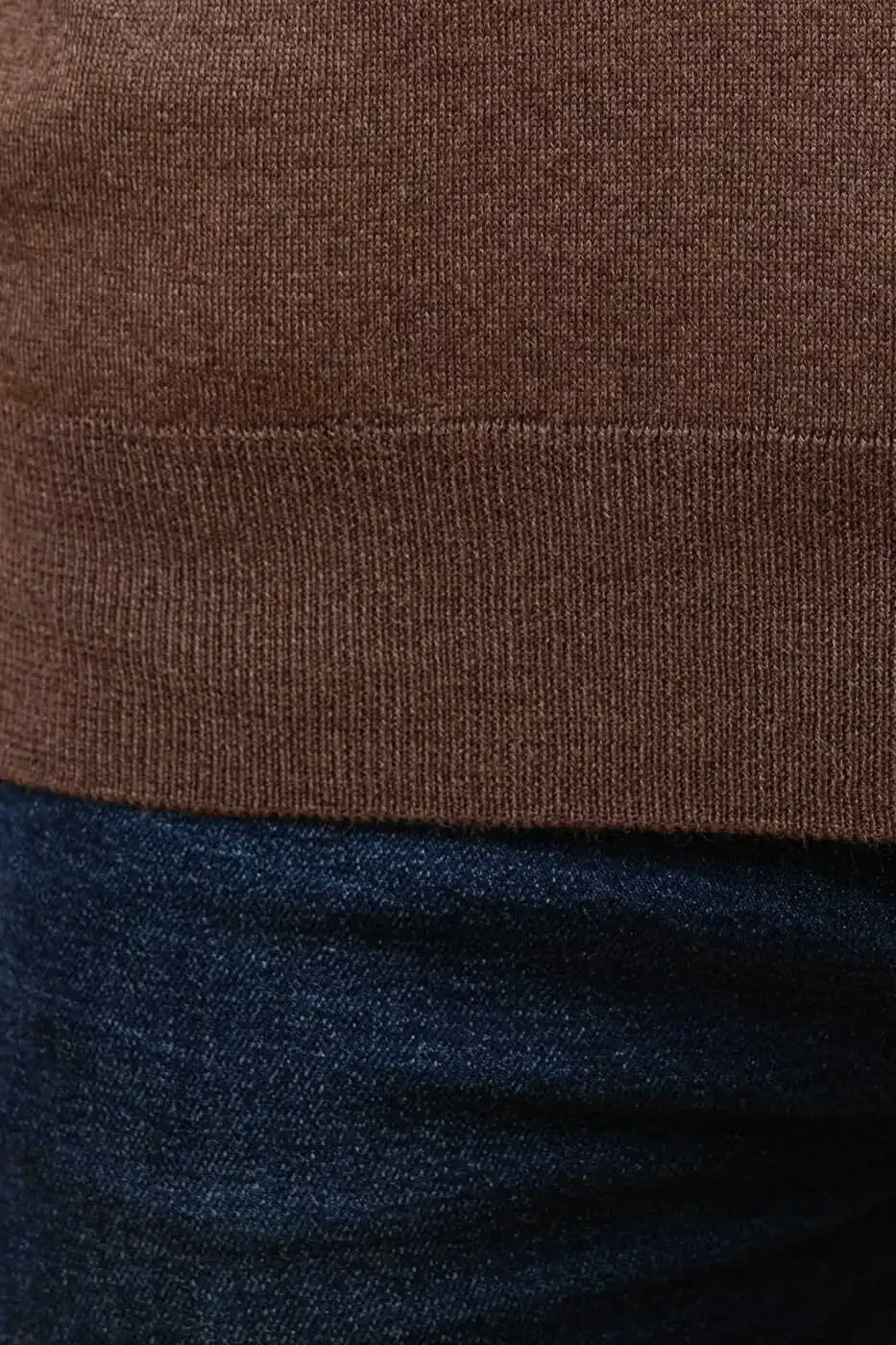 Этот свитер коричневого цвета подойдет к любой комбинации, что делает его идеальным выбором для повседневного использования, дома или на улице. Вы можете сочетать его с толстыми носками и брюками для теплого и стильного образа. Кроме того, вы можете надеть сверху куртку или пальто, чтобы завершить свой стиль.