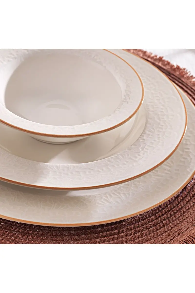 Volte 55 Qismlik Ovqat To'plami - Oq, zamonaviy va nafis dizayni bilan stollaringizga nafislik va o'ziga xoslik qo'shadi. Har bir qismning nozik ishlanganligi va oq rangning pokligi bilan siz ajoyib ovqat tajribasini boshdan kechirasiz.