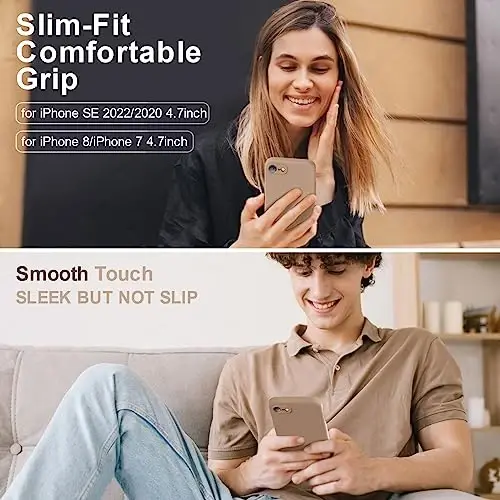 Vooii for iPhone SE Case 2022/3rd/2020,iPhone 8/7 Case, Upgraded Liquid Silicone with [Flat Edges] [Camera Protection] [Soft Anti-Scratch Microfiber Lining] Phone Case for iPhone SE - Light Brown
