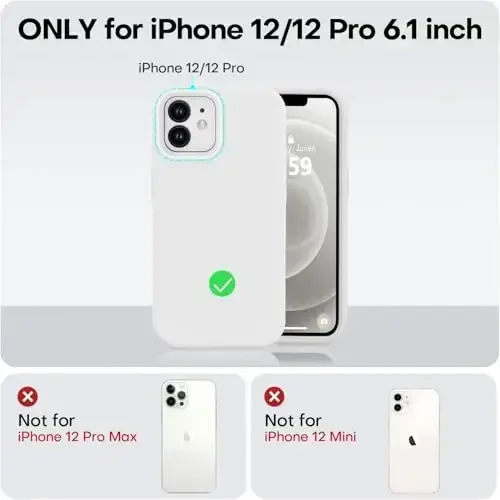 Vooii iPhone 12 Case/iPhone 12 Pro Case bilan mos keladi, suyuq silikon yangilanishi [Yumshoq tirnalishga qarshi mikrofiber astar] [Zarbga chidamli tushishdan himoya] Telefon qutisi 6,1 dyuym - Oq