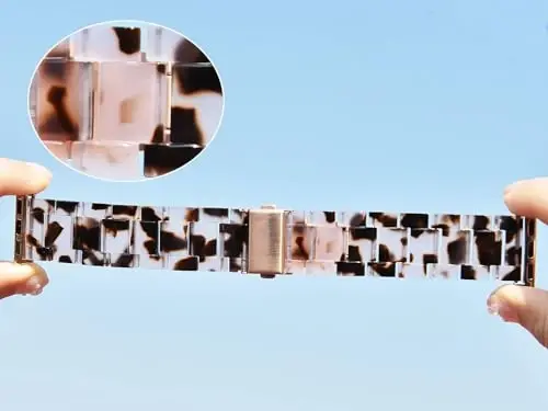 The V.R.HOPE Resin Watch Band is both a stylish and useful accessory for your Apple Watch. The resin material of the strap provides durability and longevity, while its lightweight structure does not add weight to your wrist. The stainless steel clasp ensures the security of your watch, while the tortoiseshell pattern and rose gold details add elegance to your style. Thanks to the waterproof feature of the strap, you can easily use it in your daily activities. With the link removal tool and instructions included in the box, you can easily adjust the strap to your own wrist. The product is designed specifically for women and offers an unforgettable gift option for your loved ones on special occasions such as weddings, birthdays, Valentine's Day, Mother's Day, Christmas, Thanksgiving and anniversaries. With V.R.HOPE, your Apple Watch will no longer be just a watch, but also an accessory that reflects your style.