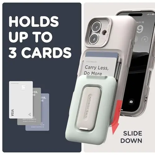 Modern Simple Design: The Orb case for iPhone 16 features a sleek, contemporary design available in various colors, allowing personalized style choices. Stand out from typical phone cases with this elegant option. Secure Card Holder: This iPhone 16 case includes a secure card holder on the back that holds up to 2 cards. The easy-slide mechanism allows for convenient access, making it simple to open and close with one push. Simplify your life with this handy card holder case. Everyday Convenience: A perfect blend of card holder and phone case, designed for the busy modern lifestyle. Built-in Stand: Enjoy hands-free use with the built-in stand, perfect for convenient viewing of media and other content. This feature enhances the functionality of your iPhone 16. Perfect Fit: Precision-engineered to fit the iPhone 16 perfectly, this case ensures easy access to all ports and buttons while providing complete protection. Experience a seamless fit and exceptional usability.
