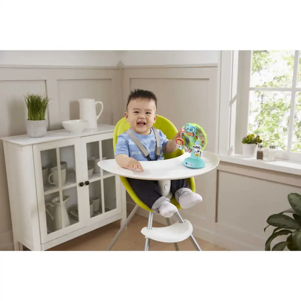 With the VTech Baby Turn & Learn Ferris Wheel, your little ones can take a fun Ferris wheel ride! No ticket required! Your baby will discover animals, numbers and objects accompanied by fun sounds and four songs. When they press the friendly yellow lion, black and white zebra and blue elephant buttons, they will hear the animals introduce themselves, the numbers and the objects with their own unique sounds. Watch your child's face light up as they spin the brightly colored wheel. With each turn, sounds and songs play, along with three flashing stars to keep them engaged. Bring the carnival to your home by suctioning the Ferris wheel to a high chair tray or any flat surface. The Ferris wheel will stay put so you won't have to constantly pick it up off the floor, and your busy little ones will be entertained. Round and round, up and down, we go on the Ferris wheel. This toy is perfectly designed to support your baby's fine motor skills, understanding of cause and effect, and sensory development. Vibrant colors, cute animal figures, and engaging music will capture your baby's attention and extend playtime. Thanks to its durable design and safe materials, your baby can play and explore safely. Suitable for babies 6 months and older. The Turn & Learn Ferris Wheel is a fun and educational toy that supports your baby's early development. You can rest assured while your baby learns in a fun way. Every turn is a new discovery, every song a new adventure! Made with VTech quality, this toy is durable and safe for long-lasting use. Give your baby an unforgettable play experience!