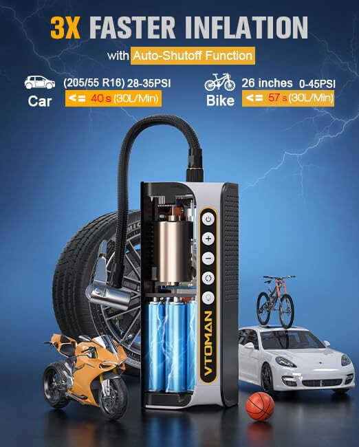 VTOMAN X6 Pro Havo Kompressori | Tashiladigan 160PSI Shinalar Shishirish Pompasi