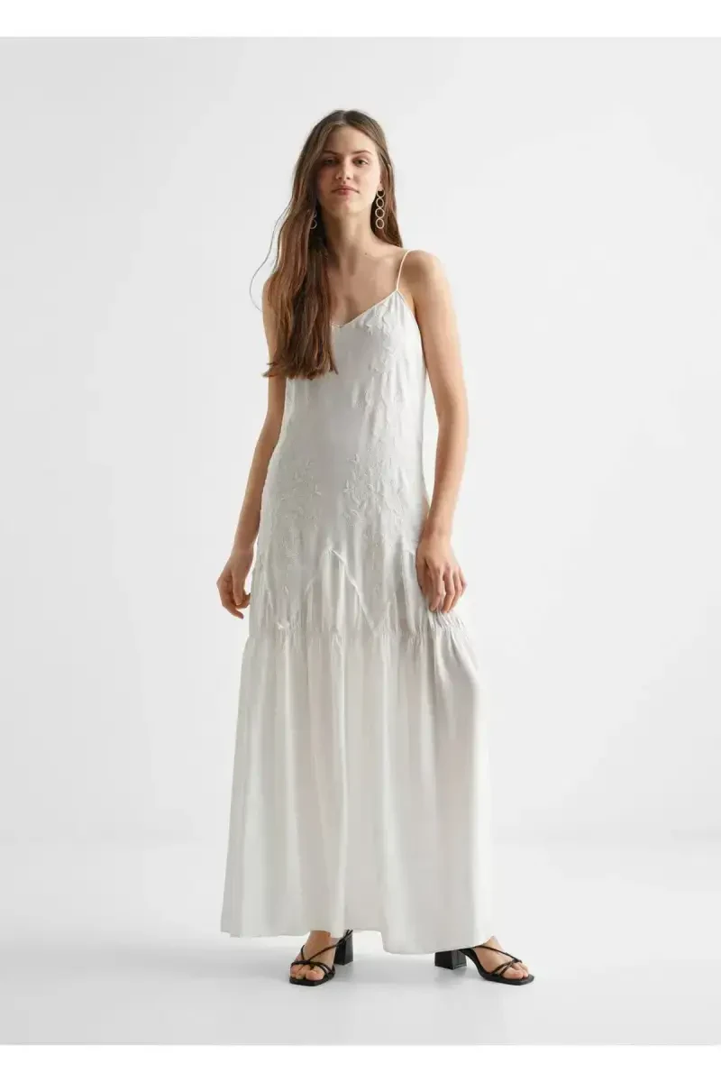 Вышитое длинное платье - белое, это особый дизайн, сочетающий в себе элегантность и комфорт в каждый момент вашей жизни. Это уникальное изделие, предлагаемое с гарантией Trendyol, станет незаменимым в вашем гардеробе. Благодаря широкому диапазону размеров оно идеально подходит для любого типа фигуры, а V-образный вырез подчеркивает вашу женственность. Эластичность и комфорт трикотажной ткани обеспечивают комфорт в течение всего дня. Простой узор легко сочетается с различными аксессуарами и обувью, а длинный подол обеспечивает элегантность, подходящую как для повседневного использования, так и для особых случаев. Тип плетения тюль обеспечивает легкий и воздушный опыт ношения, не ограничивая вашу свободу движений. Это платье не только позволяет вам выглядеть стильно, но и чувствовать себя хорошо. Вышитые детали придают платью элегантный оттенок, а благородство белого цвета привлекает внимание в любой обстановке. Будь то летняя вечерняя прогулка или особый случай, в этом платье вы всегда будете выглядеть стильно. Длинный подол платья делает ваши ноги визуально длиннее, а также изящно подчеркивает линии вашей фигуры. Мягкая текстура трикотажной ткани нежно касается вашей кожи, обеспечивая комфорт в течение всего дня. V-образный вырез делает вашу шею более изящной и приятно подчеркивает область декольте. Это платье можно подготовить к особому случаю, сочетая его с элегантными туфлями на каблуке и изящным ожерельем, или отразить свой повседневный стиль, дополнив его сандалиями и соломенной шляпой. Вышитое длинное платье - белое - это универсальный предмет, который легко адаптируется к любому стилю. Кроме того, оно легко чистится благодаря соответствию инструкции по стирке Type 1 и предлагает длительный срок службы. Таким образом, вы можете сохранить свое платье таким же ярким и стильным, как в первый день. С быстрой доставкой и бесплатным возвратом в течение 15 дней, предлагаемыми Trendyol, приобрести это уникальное платье стало очень просто. Откройте для себя вышитое длинное платье - белое прямо сейчас, чтобы обновить свой гардероб и придать своему стилю новое дыхание!