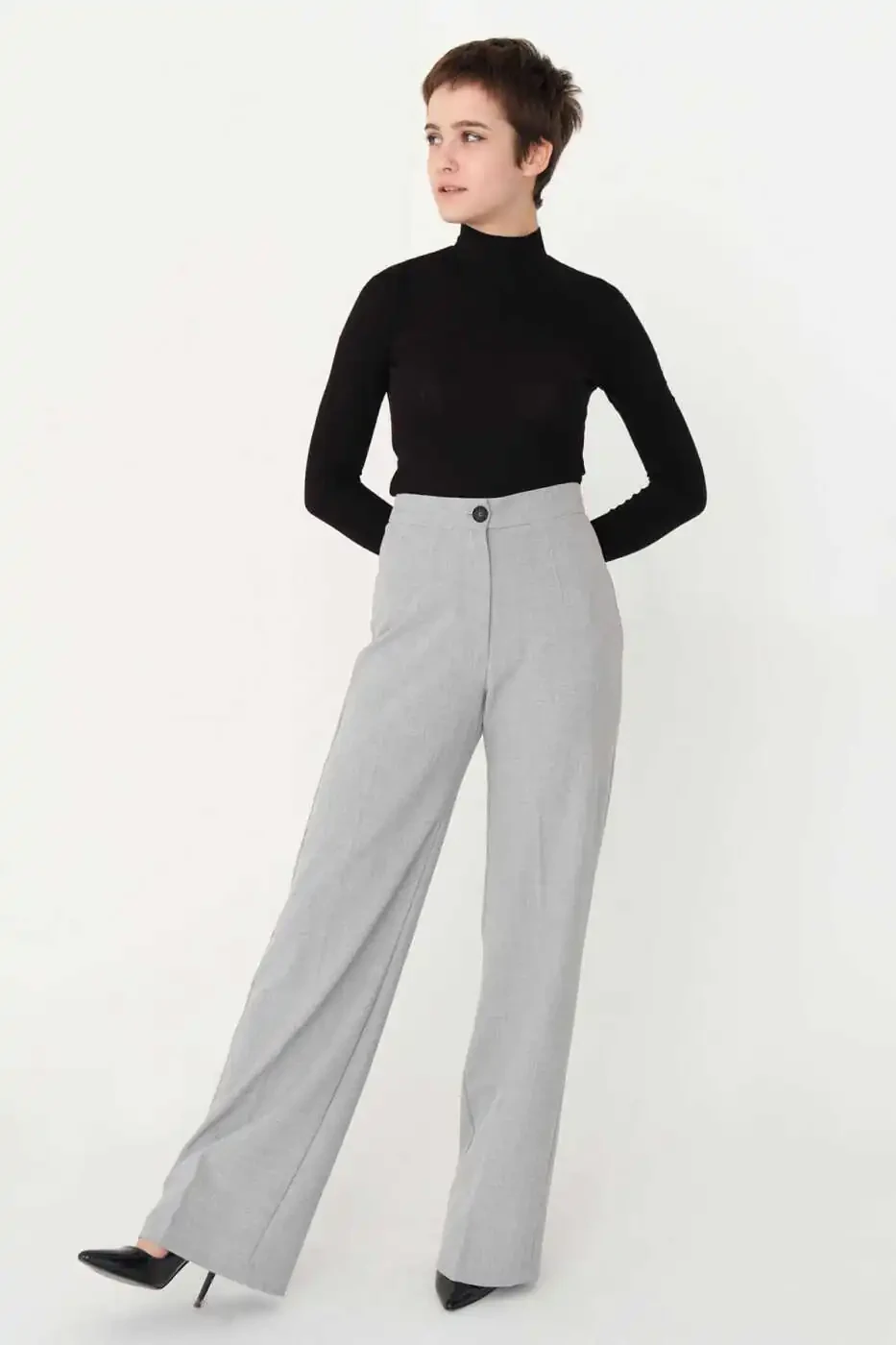 Addax tarafından sunulan Yüksek Bel Wide Leg Pantolon Pn8130 - Dk14, gardırobunuzun vazgeçilmez bir parçası olmaya aday. Şıklığı ve rahatlığı bir araya getiren bu pantolon, hem günlük kullanım hem de özel günler için mükemmel bir seçenek sunuyor. Yüksek bel kesimi, vücut hatlarınızı zarifçe ortaya çıkarırken, wide leg (geniş paça) tasarımı modern ve trend bir görünüm yaratır. Düğmeli ve fermuar patlı oluşu, kullanım kolaylığı sağlarken, pens detayları ve ön-arka kat izleri, pantolona sofistike bir hava katıyor. Cepsiz tasarımı, pantolonun şık ve sade görünümünü korurken, klasik pantolon kesimi her türlü üst giyimle kolayca kombinlenebilmesini sağlar. Yüksek kaliteli kumaş içeriği (%64 Polyester, %31 Viskon, %5 Elastan) sayesinde gün boyu rahatlık ve hareket özgürlüğü sunar. Kumaşın dokusu, pantolonun üzerinizde hoş bir şekilde durmasını sağlarken, elastan içeriği sayesinde esneklik ve konfor sağlar. Addax kalitesiyle üretilen bu pantolon, uzun ömürlü ve dayanıklıdır. Manken üzerindeki ürün 36/S bedendir ve numune beden ölçüleri şu şekildedir: Boy: 110 cm, Bel: 66 cm, Basen: 104 cm, İç bacak boyu: 82 cm (1-3 cm değişiklik gösterebilir). Ürün çekimlerinde renkler, ışık farklılığından dolayı değişkenlik gösterebilir, bu nedenle ürünün gerçek rengi ekranda gördüğünüzden biraz farklı olabilir. Yüksek Bel Wide Leg Pantolon Pn8130 - Dk14 ile tarzınızı yansıtın, hem şık hem de rahat olun. İster topuklu ayakkabılarla kombinleyerek özel bir davete katılın, ister spor ayakkabılarla günlük şıklığınızı tamamlayın. Her durumda kendinizi güvende ve stil sahibi hissedeceksiniz. Addax'ın özenle tasarladığı bu pantolon, gardırobunuzun en sevilen parçalarından biri olacak. Kampanya fiyatı ve stok avantajlarından yararlanarak, bu eşsiz parçaya sahip olma fırsatını kaçırmayın. Şıklığı ve konforu bir arada sunan bu pantolon ile her zaman dikkat çekici olun. Unutmayın, tarzınız sizin kimliğinizdir ve Addax ile tarzınızı en iyi şekilde yansıtabilirsiniz. Yüksek Bel Wide Leg Pantolon Pn8130 - Dk14, sadece bir pantolon değil, aynı zamanda bir stil ifadesidir. Şimdi sipariş verin ve farkı yaşayın!