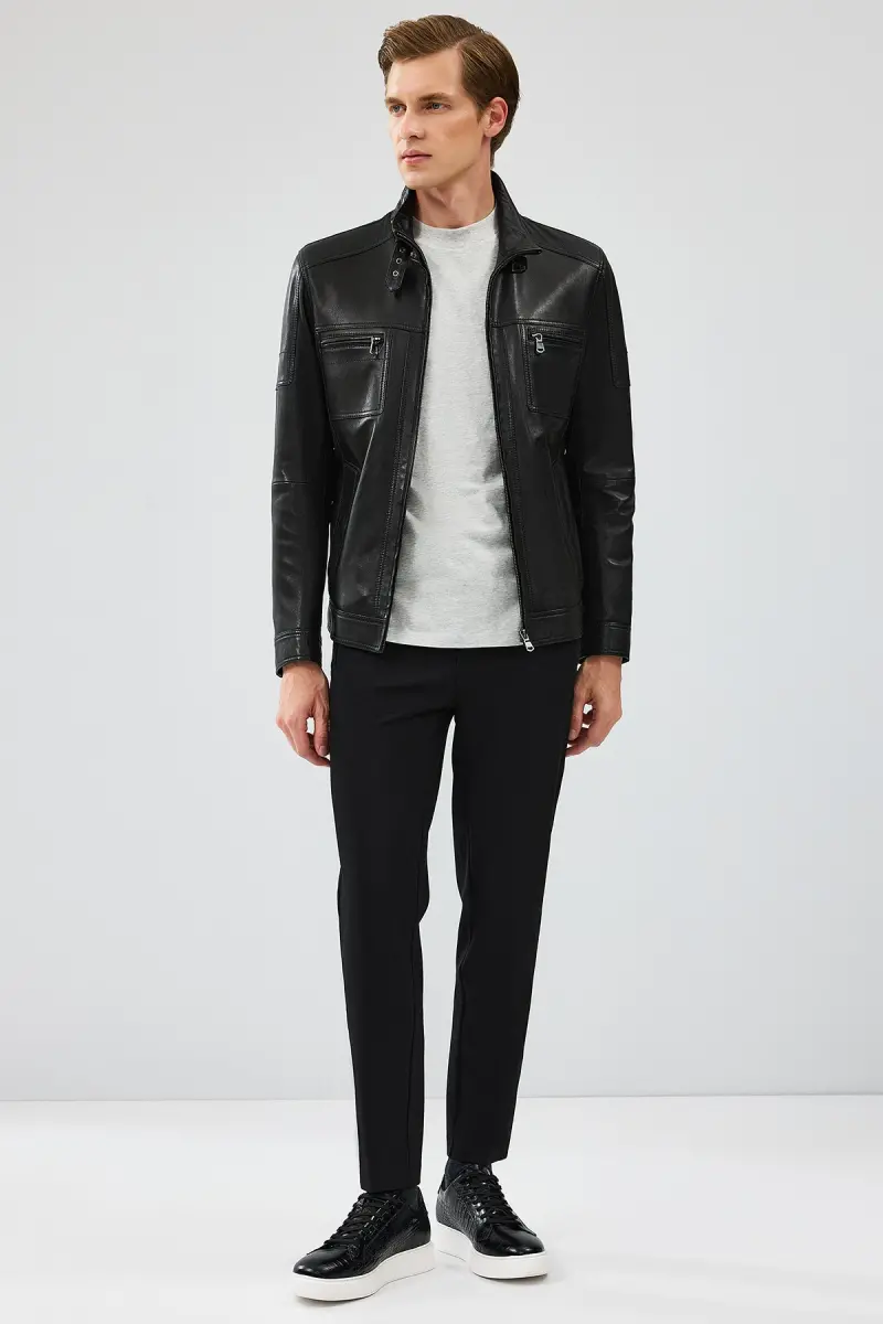Wade Erkaklar Qora Slim-fit Teri Ko'ylagini tanlash orqali siz o'zingizning uslubingizni aks ettiruvchi va sizni sovuqdan himoya qiladigan investitsiya qilgan bo'lasiz. Hoziroq buyurtma bering va uslubingizni yangi bosqichga olib chiqing!