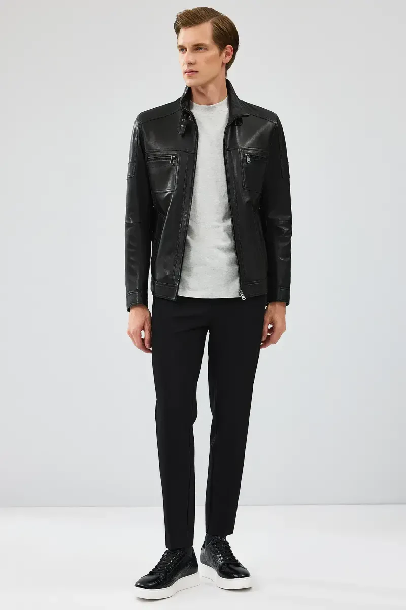 By choosing the Wade Men's Black Slim-fit Leather Jacket, you will make an investment that reflects your style and protects you from the cold. Order now and take your style to the next level!