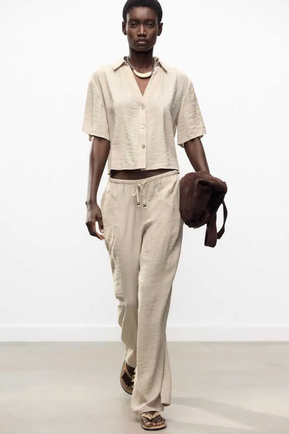 ELASTIC WAIST WIDE LEG PANTS - Sand color is a stylish and comfortable option that is set to become a staple in your wardrobe. These pants are designed to adapt to the dynamic lifestyle of the modern woman. While prioritizing comfort in everyday use, it stands out as a piece that will complement your elegance at special events. The warm and natural tone of sand color easily adapts to all kinds of combinations and offers you unlimited style possibilities.One of the most striking features of the trousers is its drawstring adjustable elastic high waist. This feature ensures that the pants fit your waist perfectly and offers a comfortable wearing experience all day long. Thanks to the drawstring adjustment mechanism, you can adjust your waist to the desired tightness, so you can achieve a stylish look without restricting your freedom of movement. The high waist cut gently emphasizes your body lines and creates a longer silhouette.The front pocket design adds both functionality and a modern touch to the pants. Pockets allow you to safely carry your small items (phone, keys, cards, etc.) and offer practical use. The position and size of the pockets have been carefully designed to increase usability without disturbing the overall aesthetics of the pants.The wide leg cut is one of the most distinctive features of the ELASTIC WAIST WIDE LEG PANTS. Wide legs appear as a modern interpretation of a retro style and allow you to feel freedom with every step. This cut offers both comfortable use and makes your legs look longer. Wide legs create an elegant flow while on the move and add a sophisticated touch to your style.ELASTIC WAIST WIDE LEG PANTS - Sand offers long-lasting use thanks to its high-quality fabric. The texture of the fabric leaves a pleasant feeling on your skin and ensures you are comfortable all day long. The seams of the trousers are carefully made and their durability is increased. In this way, you can safely use your pants for many years.Whether you create a casual combination with a sports t-shirt and sneakers, or attend a special event with a stylish blouse and high heels, ELASTIC WAIST WIDE LEG PANTS - Sand will accompany you in any case and complete your style. These pants can be easily combined with other pieces in your wardrobe and allow you to create different styles.ELASTIC WAIST WIDE LEG PANTS - Sand is not just a pair of pants, but also a lifestyle. Combining comfort, elegance and functionality, these pants meet the needs of the modern woman and ensure you always look your best.