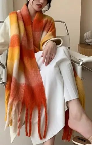 Wander Agio Winter Women Warm Scarf Long Shawl Large Scarves Cold Weather Thick Blanket Scarfs Colorful Plaid, soğuk hava koşullarında stilinden ödün vermek istemeyen kadınlar için tasarlanmıştır. Ürünün uzun ömrünü korumak için elde yıkama veya kuru temizleme önerilir. Farklı renk seçenekleriyle her zevke hitap eder. Lütfen ürünün gerçek renginin, ekran ayarlarınızdan dolayı fotoğraftakinden hafif farklılık gösterebileceğini unutmayın.