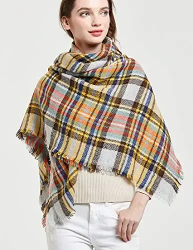 Stay warm and stylish during the cold winter days with the Wander Agio Women's Warm Blanket Scarf Square Winter Shawl Large Infinity Scarves Striped Plaid Scarf! This versatile and chic scarf will keep you warm like a blanket while adding an elegant touch to your outfits. The 55*55 inch square design allows you to use it with different tying styles. Whether you wrap it around your neck, throw it over your shoulders, or cover your head, you will achieve a flawless look in every way.Thanks to its soft and skin-friendly texture, it offers comfortable use throughout the day. It keeps your skin warm and comfortable in cold weather without irritating it. The multicolored plaid pattern adapts to every style while adding vibrancy to your outfits. Classic, modern, bohemian or sporty; Whichever style you adopt, this scarf will complement your combinations.This scarf, produced with Wander Agio quality, is designed for long-lasting use. It is produced using high quality materials and does not wear out or deform easily. It maintains its appearance as if it were the first day even with heavy use. It also comes with a specially designed frosted dust bag. This bag allows you to safely store your scarf and carry it with you on your travels. This stylish detail bearing the Wander Agio signature emphasizes the quality and value of the scarf.This scarf is not just an accessory, but also a lifestyle statement. Express your style with the Wander Agio Women's Warm Blanket Scarf whenever you want to feel special and stylish. It is also a perfect option to gift to your loved ones. For a birthday, anniversary, Valentine's Day or any special day, this scarf will offer them both warmth and style. Enjoy the winter with Wander Agio!