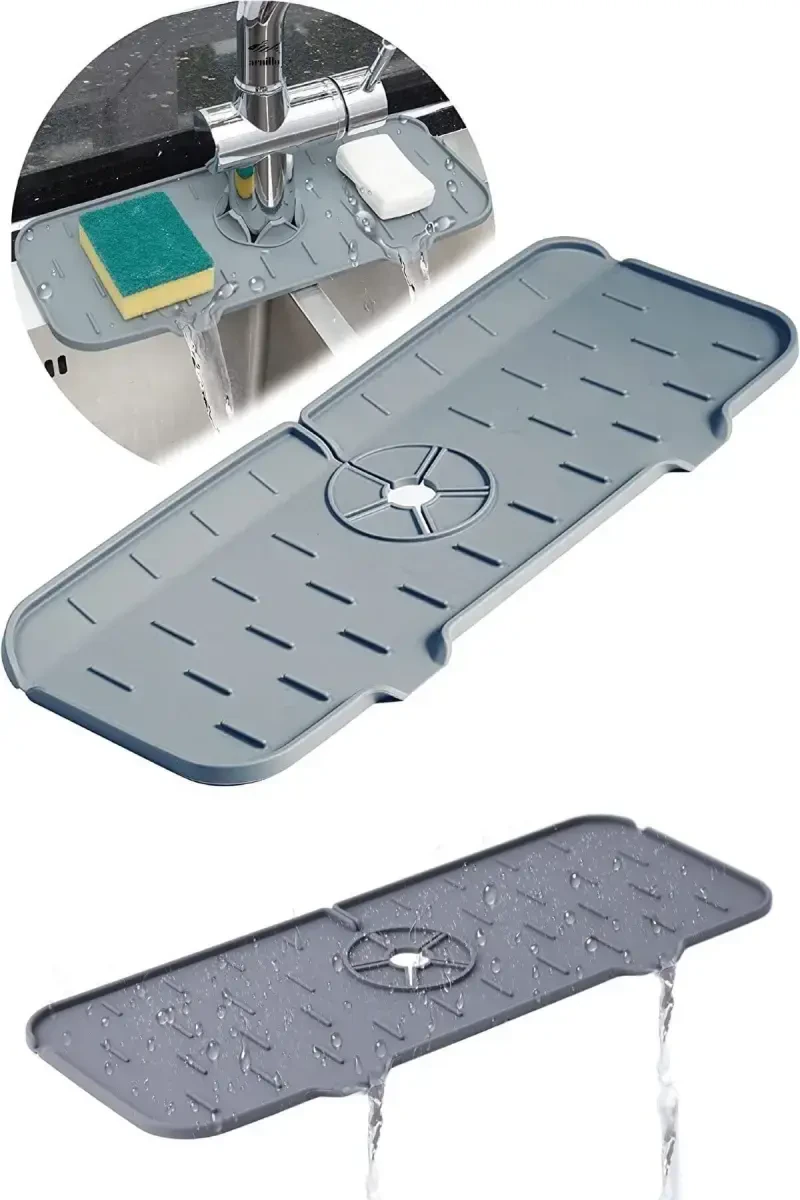 Looking for a practical and aesthetic solution to enhance the style and cleanliness of your kitchen and bathroom? The Water-Holding Faucet Mat is perfect for you! This stylish and functional mat prevents water from dripping onto your countertop from your faucet, preventing water stains and unwanted damage. Made from a soft, flexible, and durable material, the mat is easy to clean and reusable. Available in three different colors (Black, Gray, and Light Green), you'll easily find a color that matches your kitchen and bathroom decor. It not only ensures water absorption and drainage but also provides a practical storage area for your toothbrushes, soaps, and other small items. With its wide range of uses and practical design, it will help you save time and cleaning effort. It provides ideal protection for your wooden countertops, keeping them clean and shiny for years to come. Be sure to try this product that will simplify your daily life and add style to your living space!