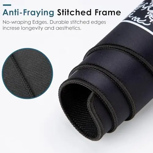35.43"x15.75" Extented Size: The large size gives you ample of room to fit your mouse, keyboard, and laptop and other desk items. Perfect for those bothered by constantly having to move the mouse and pick it up and replace it. Stay-Put Natural Rubber Base: Natural rubber material prioritizes both your health and the environment while ensuring prolonged durability. Say goodbye to sliding mouse pads. Our design features a textured non-slip rubber base that ensures your pad remains firmly anchored to your desk, offering stability during intense gaming sessions or daily tasks. Smooth, Accurate Glide: Enjoy swift mouse movements with pinpoint accuracy on our mouse pad's smooth surface. Durable Stitched Edges: Crafted to last, our mouse pad comes with durable stitched edges, preventing fraying and ensuring consistent performance. Trust in a product that's built for longevity. Waterproof and Easy-to-Clean Surface: Cleaning is hassle-free; simply wipe with a cloth as needed and get back to your tasks or gaming sessions.