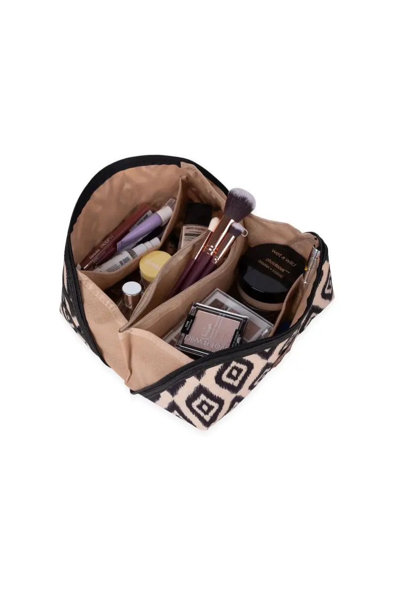 This durable and stylish bag is made from high-quality waterproof material, offering protection against spills that may occur during daily use. Its spacious and compartmentalized design makes it easy to organize your cosmetics, brushes, accessories, and more. It also features a comfortable handle for easy carrying.
