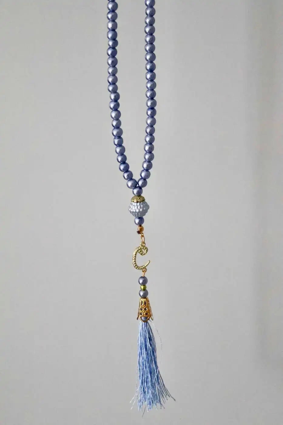 Handcrafted blue pearl rosary. It has tassel with vav-shaped order from the imamah downwards. Its average length is 25 cm. Suitable for wholesale. 20 pieces are sent.