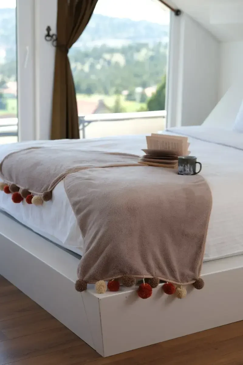Wellsoft Pompon Scarf is a multi-purpose and stylish product that can be used as a shawl, stole, or bed runner. This product, carefully prepared by Cakkatex, is offered at a campaign price. It is a handmade product in the production of which many skillful housewives have labored. It is made of 1st quality Wellsoft fabric and provides comfort all day long with its soft texture and lightness while relaxing you. It prevents you from sacrificing your elegance while keeping you warm in cold weather. Thanks to the pompons attached to the edges, it has a unique design away from ordinariness. Thanks to its 60 cm width, you can use it not only as a scarf but also as a stole by taking it on your shoulders. If you want to add visual richness to your bed, you can also evaluate it as a runner. It easily adapts to every style with its mink color. By purchasing this product, you will also contribute to the feeding of our pawed friends living on the streets; because 10% of the income from sales is used for this purpose. The versatility of the product makes it an ideal accessory that can be used in all seasons and environments. Whether in daily use or on special occasions, it is a perfect choice to complement your style and add warmth to you. Being handmade ensures that each product is unique and special. The quality of Wellsoft fabric offers a long-lasting use, while pompom details add movement and vitality to the product. If you are looking for a product that is both stylish, useful, and socially responsible, Wellsoft Pompon Scarf is for you.