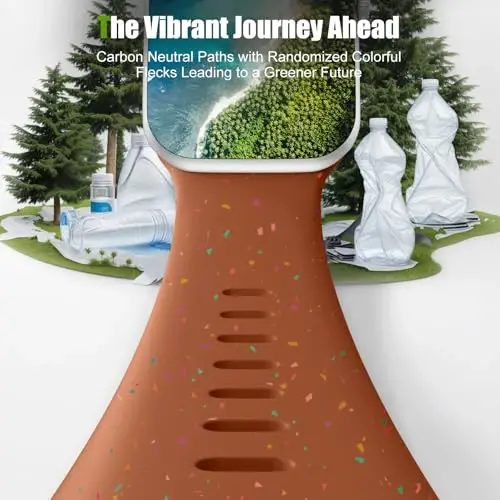 Bring a breath of fresh air to your smartwatch with the Wepro for Apple Watch SE Band! This specially designed silicone sports band provides a perfect fit with your Apple Watch, complementing your style and offering comfortable use. Compatible with 44mm, 10, 46mm Series 9, 45mm Series 3, 42mm, and Ultra 2 49mm models, this band is an ideal option for women and men. Thanks to its breathable and waterproof structure, you can use it comfortably while doing sports, in your daily activities, or on special occasions. Its stylish brown tone easily matches any outfit, while you can reflect your style with vibrant color options. Wepro designers have used randomly colored pieces to offer a unique design in this band. Each band contains at least 35% recycled fluoroelastomer, while the colored pieces themselves are made of at least 66% recycled fluoroelastomer. In this way, you make an environmentally conscious choice and use an accessory that combines sustainability and fashion. These colorful details, resembling vibrant confetti, add energy to your life, while you contribute to a brighter future with recycled materials. Made of skin-friendly, lightweight, and flexible silicone material, this band offers comfortable use all day long. Thanks to its non-irritating structure, you won't compromise on your comfort even while exercising, working, traveling, or shopping. Its waterproof and sweat-resistant feature accompanies you during your exercises such as running, swimming, or yoga. Additionally, this silicone band, compatible with the Apple Watch Series 9 band 41mm, supports your active lifestyle. Putting on and taking off the Wepro for Apple Watch SE Band is extremely easy. Thanks to its advanced adapter, you can quickly attach and remove it. The pin and tuck closure system provides a secure and comfortable fit. Different size options are available to suit your wrist size. The 38/40/41/42mm (Series 10) S/M size is suitable for 130-180mm (5.1"-7.1") wrists, and the 38/40/41/42mm (Series 10) M/L size is suitable for 150-200mm (5.9"-7.9") wrists. The 44/45/46/49/42mm (Series 3 2 1) S/M size is suitable for 140-190mm (5.5"-7.5") wrists, and the 44/45/46/49/42mm (Series 3 2 1) M/L size is suitable for 160-210mm (6.3"-8.3") wrists. You can find an option suitable for every style with various color options. You can choose starlight, black, or transparent colors for a sporty look, and use eye-catching hot pink or light purple colors when going shopping or to a party. For a more comfortable look, you can prefer cute pink, white, or green tones. Get ready to receive countless compliments from your friends, colleagues, and loved ones! This watch band offers a great gift option for birthdays, holidays, and more. Enjoy using our product, and we are happy to serve you with a smile. We offer quick answers to your questions throughout the day. Wishing you a colorful day!