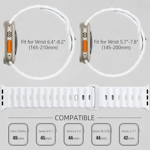 • Apple Watch Ultra 2/Ultra (49mm), Series 9/8/7 (45mm), Series 6/5/4/SE (44mm), Series 3/2/1 (42mm) bilan mos