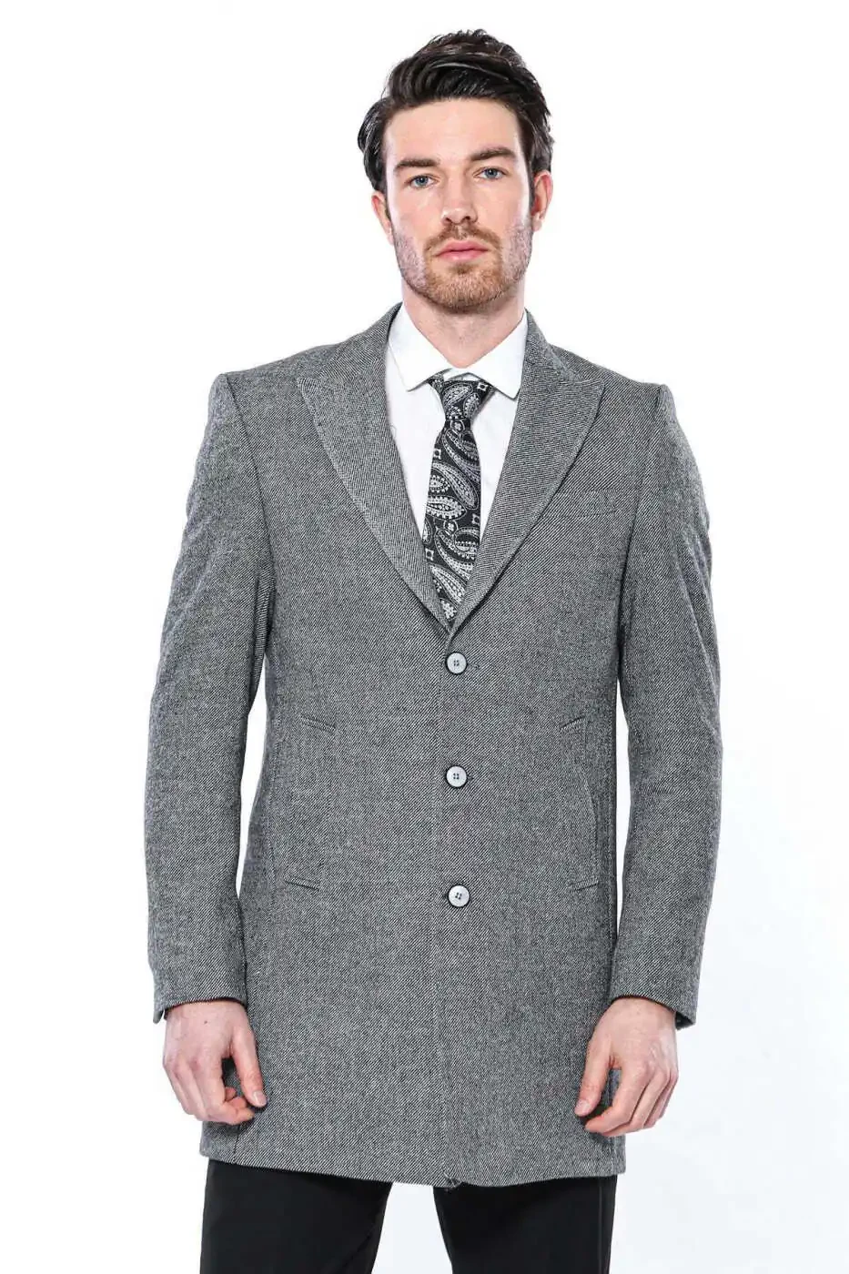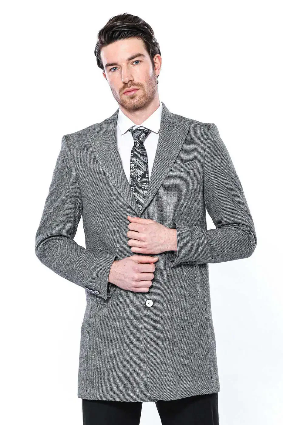 The Wessi Peacoat with Sharp Collar, Knee-Length, Grey for Men is a piece you can easily choose for everyday life, business life or special occasions. The coat's gray color complements your outfits by blending in with any outfit.