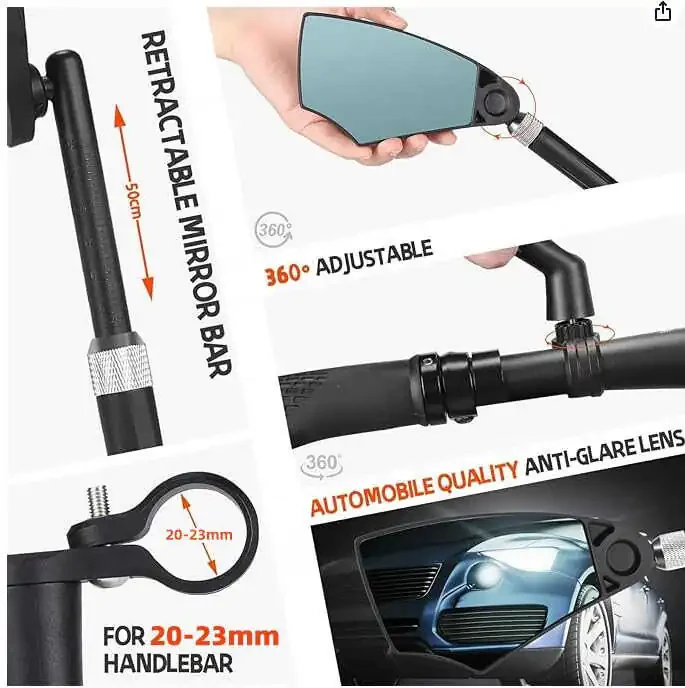 WEST BIKING Anti-Glare Rulda O'rnatilgan Velosiped Ko'zg'u - Qaytariladigan va 360 ° Sozlanadigan Linzali Velosiped Orqa Ko'rinish Ko'zg'u