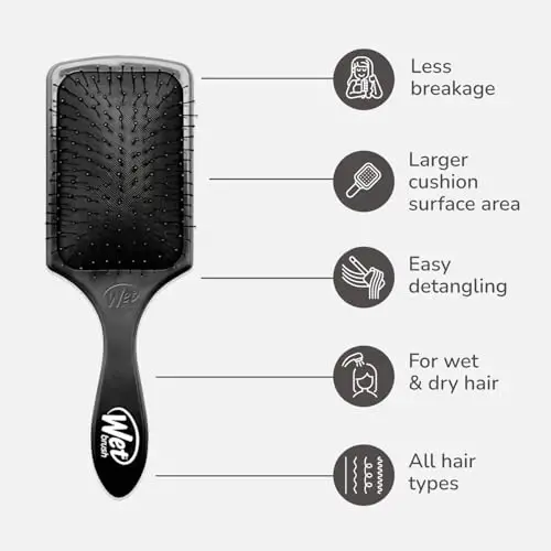 Wet Brush Paddle Detangler hairbrush is designed to gently brush and detangle wet or dry hair. Thanks to its special IntelliFlex bristles, it allows hair to be easily brushed without pulling or breaking. The AquaVent design allows water to drain quickly from the brush, making it ideal for use in the shower or after bathing. This black brush is suitable for both women and men and is an ideal option especially for processed, damaged hair.Product DescriptionMeet the Wet Brush Paddle Detangler Hair Brush! Get ready to gently say goodbye to even the most difficult tangles in your hair. This brush is much more than just a hairbrush; it is a reflection of your love for your hair. Whether you have wet hair fresh out of the shower or dry hair ready to be styled, the Wet Brush Paddle Detangler will always be your best helper. Thanks to its unique IntelliFlex bristles, you can easily brush your hair without pulling, breaking or damaging it. In this way, while protecting the natural shine and health of your hair, it also gently massages your scalp, accelerating blood circulation. Reflecting the nobility and elegance of black, the Wet Brush Paddle Detangler is a perfect choice for both women and men. Thanks to its wide surface, it allows you to save time by brushing larger areas of your hair at once. AquaVent technology allows water to drain quickly from the brush, creating an ideal environment for use in the shower or after bathing. In this way, while protecting the hygiene of your brush, it also helps your hair dry faster. Wet Brush Paddle Detangler not only detangles, but also becomes an indispensable part of your hair care routine. When applying a hair mask or conditioner, it helps the product to be distributed evenly on your hair, allowing you to get maximum benefit. Especially if you have processed, damaged or sensitive hair, this brush offers the gentle touch your hair needs. With Wet Brush Paddle Detangler, your hair will look healthy, shiny and always well-groomed.Product Features* Ultra-Soft IntelliFlex Bristles: Gently brushes hair without pulling or breaking.* AquaVent Design: Allows water to drain quickly, ideal for use in the shower.* Wide Surface: Saves time by brushing larger areas of hair at once.* Suitable for Both Wet and Dry Hair: Easily brushes wet or dry hair.* Ideal for Processed and Damaged Hair: Treats sensitive hair gently.* Suitable for Men and Women: Designed for everyone to use.* Perfect for Hair Mask and Conditioner Applications: Ensures even distribution of products on the hair.* Black Color: Offers a stylish and elegant look.* Detangling: Easily dissolves knots and tangles in the hair.* Scalp Massage: Massages the scalp during brushing, accelerating blood circulation.Additional InformationIt is recommended to clean your Wet Brush Paddle Detangler Hair Brush regularly for long-lasting use. You can use a brush cleaning tool or comb to clean the hair in the brush. You can also clean the brush by washing it with lukewarm water and soap. Avoid exposing the brush to direct sunlight and be careful to use it after it is completely dry. Wet Brush Paddle Detangler protects the health and beauty of your hair while providing you with a pleasant brushing experience.