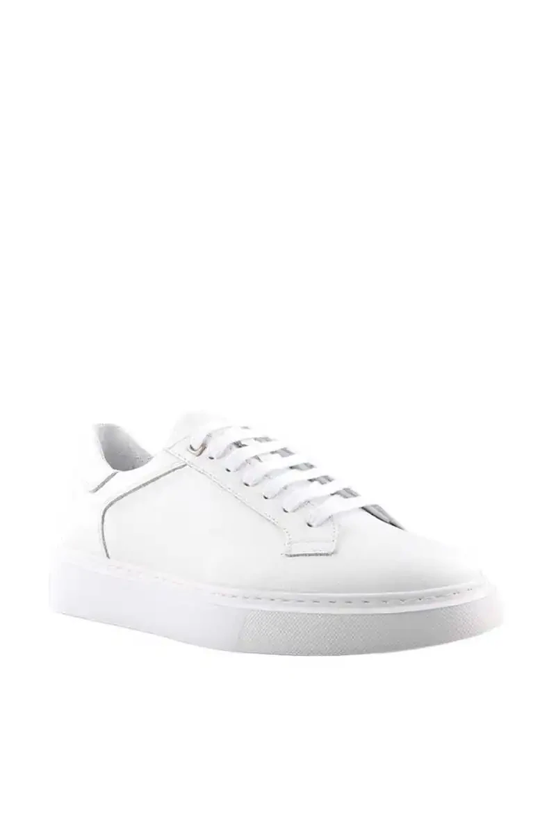 Experience comfort and style with the White 100% Leather Lace-up Casual Sneaker. Ideal for daily use, this sneaker is long-lasting and durable thanks to its 100% leather material. Its lace-up design ensures a perfect fit and provides all-day comfort.Product DescriptionThe White 100% Leather Lace-up Casual Sneaker is the perfect choice for those who want to be both comfortable and stylish in the hustle and bustle of everyday life. With its high-quality material and meticulous workmanship, this shoe protects your foot health and completes your style. Made from 100% genuine leather, this sneaker helps keep your feet dry and cool all day long with its breathable structure. The natural structure of the leather allows the shoe to adapt to the shape of your foot over time and become even more comfortable. The lace-up design allows you to personalize the shoe to fit your foot. You can achieve a fit suitable for your daily activities by tightening or loosening the laces. The soft padding material used in the insole of the shoe supports your steps and reduces fatigue. This feature is especially important during long walks or when you are standing for long periods. The white color allows you to easily combine this sneaker with all kinds of outfits. You can achieve a great harmony with jeans, shorts, skirts, and even sports dresses. This shoe, which allows you to reflect both your sporty and casual style, will be an indispensable part of your wardrobe. The sole of the shoe is made of non-slip and durable material. This way, you can walk safely on different surfaces. This sneaker, which can accompany you both in the city and on nature walks, supports your active lifestyle. It is also very easy to care for this leather sneaker, you can clean it regularly by wiping it with a damp cloth. By using leather care products, you can extend the life of the shoe and maintain its original appearance. To maintain the vibrancy of the white color, be careful not to expose it to direct sunlight. The White 100% Leather Lace-up Casual Sneaker is an ideal option for those looking for both comfort and style. With its quality material, comfortable design, and stylish appearance, this sneaker will add value to your daily life. You can choose this shoe to feel special with every step and reflect your style.Product Features* 100% genuine leather material* Lace-up design* Breathable structure* Soft insole padding* Non-slip and durable sole* Easy to clean* Suitable for daily use* Stylish and comfortable designAdditional InformationIt is recommended to use leather care products regularly to ensure the shoe lasts longer. Avoid exposing the product to direct sunlight to maintain the white color. Different size options are available. Please make sure you choose the correct shoe size when ordering.