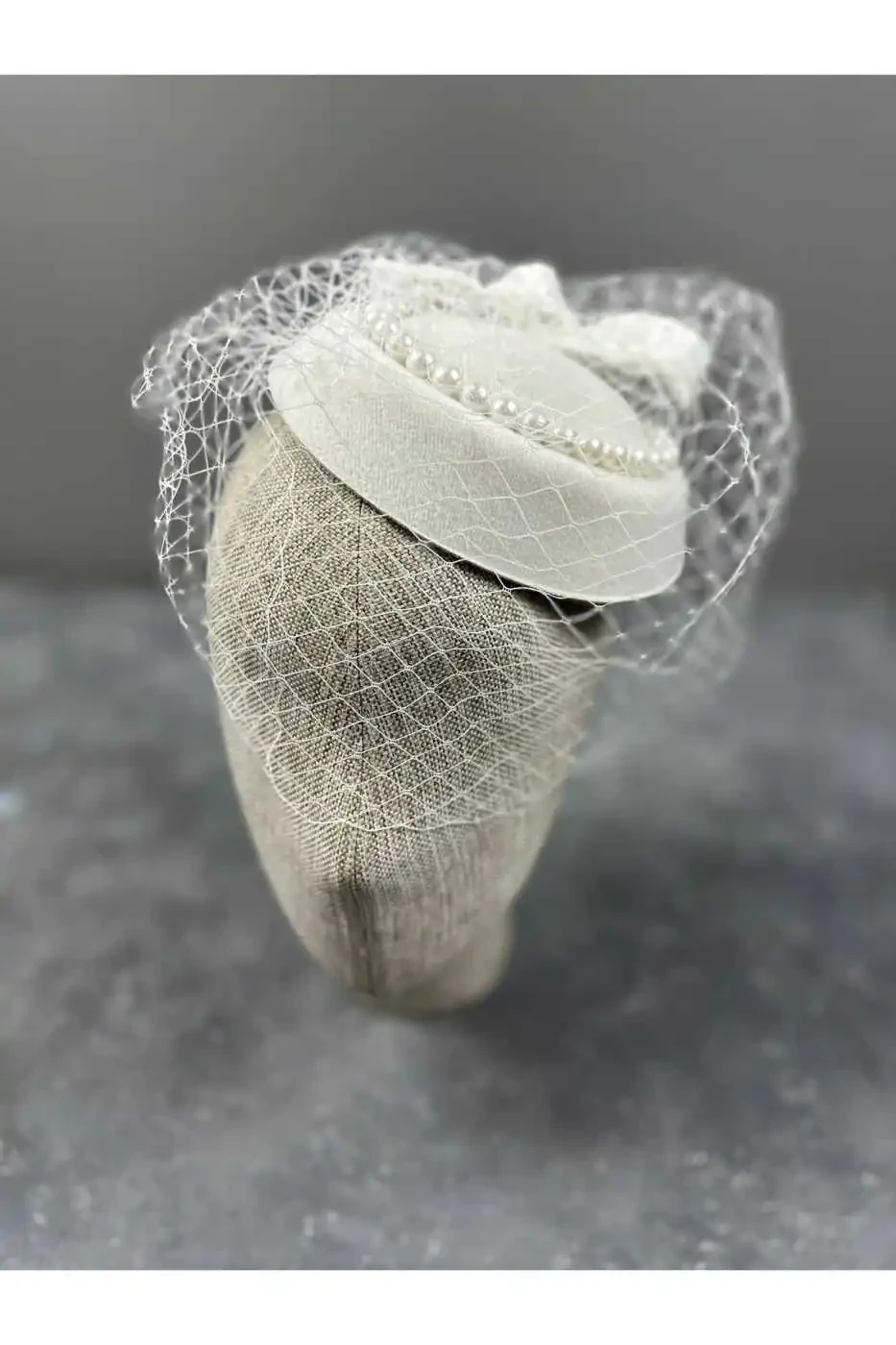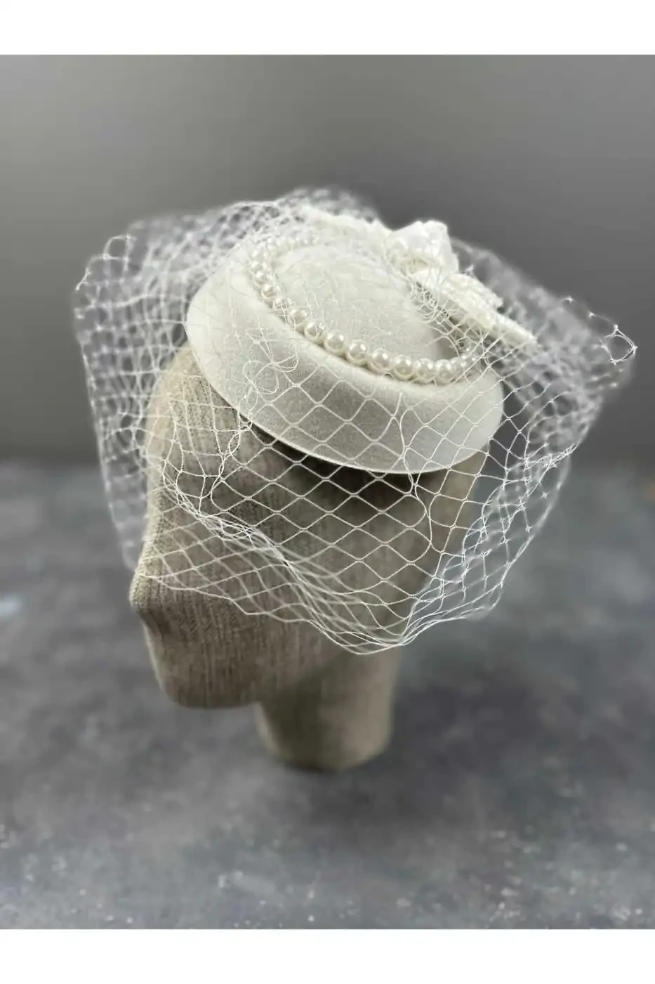 The White Bridal Hat with Pearl Detail and Bow Design will be part of your unforgettable wedding memories and make you feel like a princess. This hat, which will perfectly match both classic and modern wedding dresses, is the perfect accessory to complete your style on your wedding day.