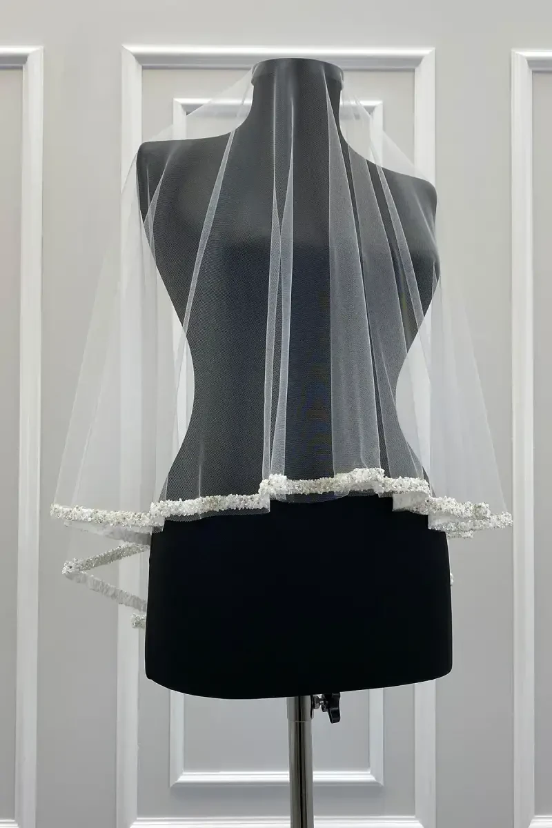 White Bridal Veil Set, Henna Veil with Glass Bead and Sequin Print, Wedding, Bride, Marriage. Product Content: 1 Bridal Veil, 1 Henna Veil. Bridal Veil Tulle Length: 70 cm. Henna Veil Tulle Length: 70 cm. Bridal Veil Color: White. Henna Veil Color: White. Material: Tulle, Glass Bead, Sequin.