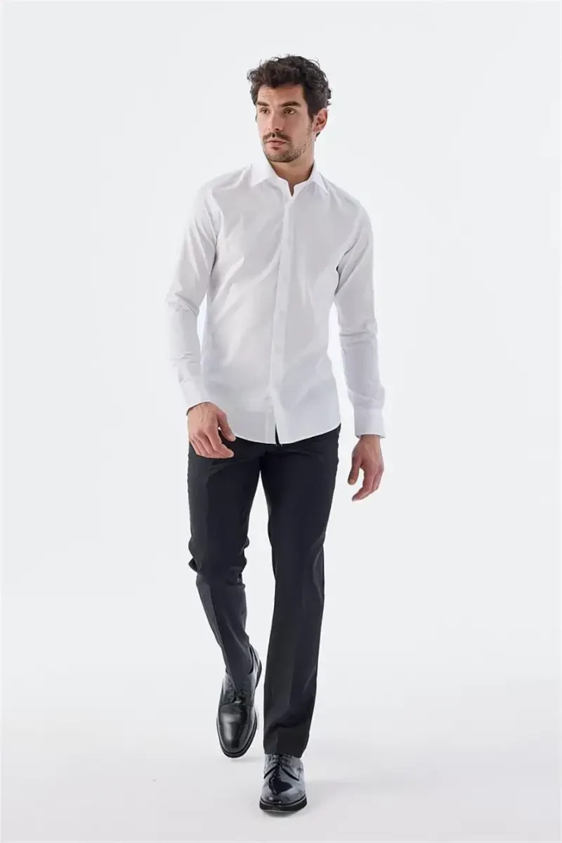 Introducing the White Classic Fit Italian Collar Long Sleeve Classic Dress Shirt in 100% Cotton Satin! Designed for a flawless look, this shirt is made from 100% cotton satin fabric, offering both comfort and style all day long. With its Italian collar and classic cut, it's the ideal choice for all formal and semi-formal events. The perfectly fitting classic fit design elegantly showcases your body shape while providing comfortable freedom of movement. Its long-sleeved design allows you to use it without compromising your style throughout the four seasons. The white color perfectly matches any suit and trousers, always giving you a flawless look. Thanks to its high-quality fabric and meticulous workmanship, you can use it for many years and never compromise your style. This shirt, which will be with you at every moment, from your job interviews to your special invitations, will captivate you with its elegance and quality. By choosing the right size, you will feel special and confident all day long. This unique shirt will complete your style and always take you one step ahead.