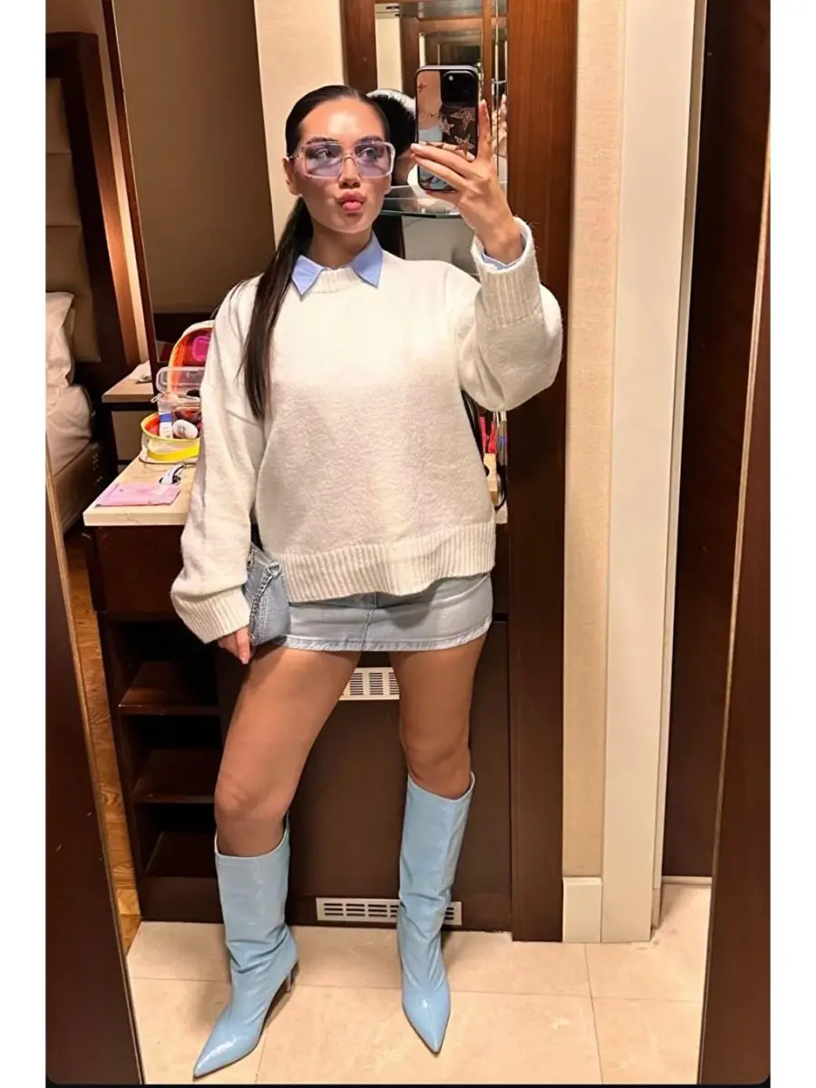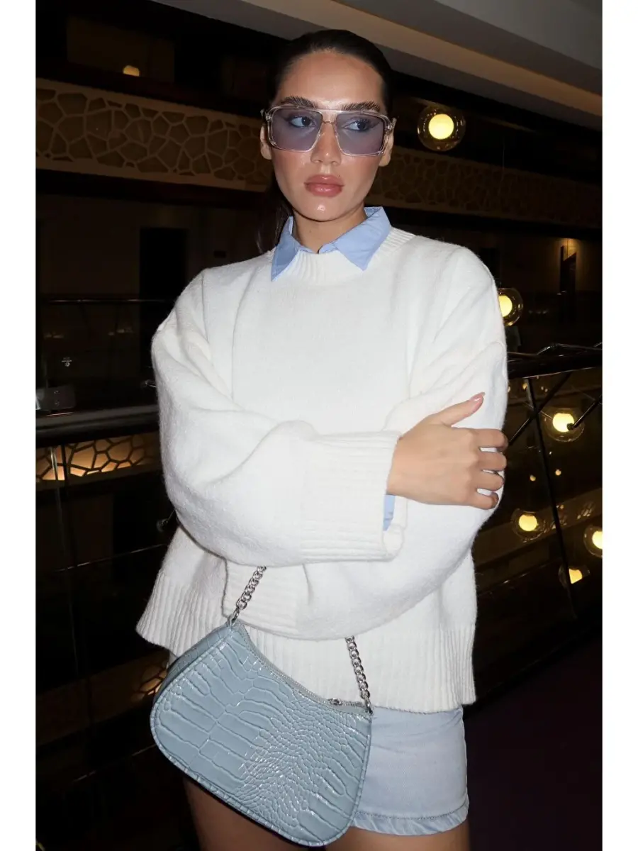 White Crew Neck Oversize Knit Sweater, a candidate to be one of the indispensable pieces of your wardrobe, combining elegance and comfort. While offering a modern look with its oversized cut, it adds an elegant touch with its crew neck detail. The knit texture provides comfortable use all day long, while the white color easily adapts to any combination. This sweater, which you can easily prefer in both your daily style and more special moments, is an ideal option to reflect your style.Product DescriptionWhite Crew Neck Oversize Knit Sweater Mg1972-White is a timeless piece that should be in the wardrobe of a modern woman. This sweater is not just a piece of clothing, but also a form of expression. The oversized cut reflects the comfortable and baggy trends of today's fashion, while the crew neck detail exhibits a classic and elegant stance. The purity and neutrality of white make this sweater compatible with all kinds of combinations; whether you create a sporty elegance with jeans or add a more feminine touch with skirts. The softness and warmth of the knit texture hugs you, especially in cold weather, offering comfort throughout the day. It allows you to speak your style in any environment, whether at the office, at school, meeting with friends or on weekend getaways. This sweater not only elevates your appearance but also your mood. It makes you feel good and increases your self-confidence. White Crew Neck Oversize Knit Sweater is not just a sweater, but also a lifestyle. This product, which contains quality and care in every detail, is a candidate to be your wardrobe's favorite piece for many years. It is an ideal choice for women who follow fashion, have style and care about comfort. With this sweater, you will always be stylish, comfortable and confident. This sweater, which will be one of the cornerstones of your wardrobe, will accompany you in every season and complete your style. This sweater, which will be with you in every moment, will be not only a piece of clothing but also a friend.Product Features* Offers a modern and comfortable look with its oversized cut.* Adds an elegant touch with its crew neck detail.* Made of high quality knit material.* Easily adapts to any combination thanks to its white color.* Ideal for daily use.* Keeps you warm in cold weather.* Long lasting.* Easily combined.* A stylish and comfortable option.* Suitable for all ages.* Different size options are available.* Model: Mg1972-White* Does not irritate the skin with its soft texture.* Does not weigh you down with its light structure.Additional InformationIt is recommended to follow the washing instructions on the label for the product to last longer. Avoid washing with colored products. Wash at low temperature and inside out. Avoid drying in direct sunlight. It is recommended to store the product folded when not in use. Over time, pilling may occur in the fabric of the product, this is due to the natural structure of the product. You can use a lint remover regularly to prevent pilling.
