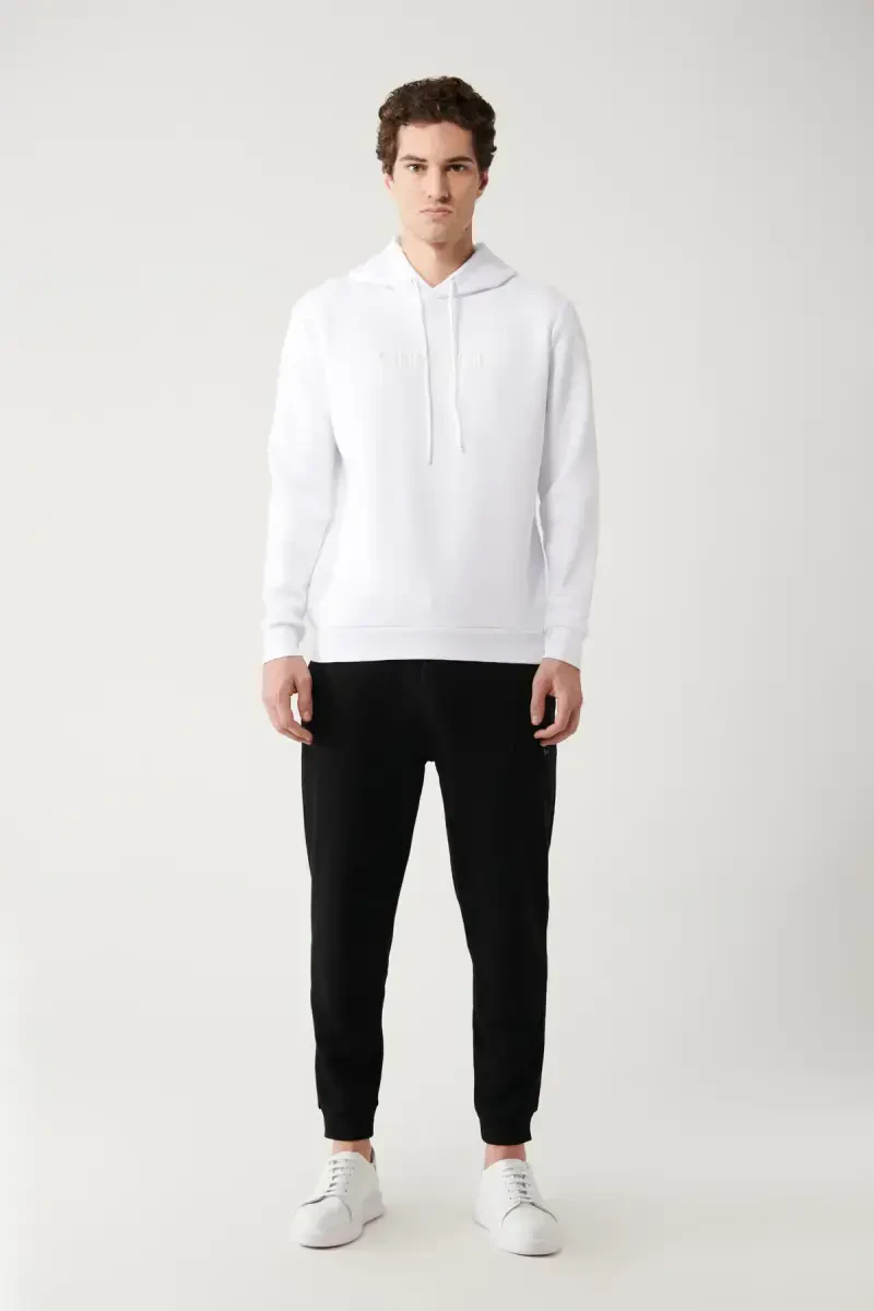 The Men's White Sweatshirt Hooded Neck 3-Thread Fleece Pyramid Printed Regular Fit A32y1240, designed with a unique design and quality materials, will add style and comfort to your everyday style. It provides a comfortable fit with its soft texture and attracts attention with its stylish pyramid print. The hooded neck and regular fit cut suit every body type.