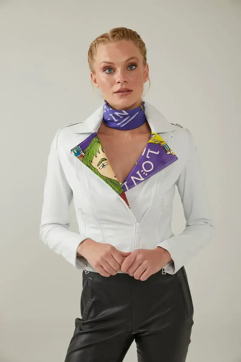 Combining style and a free spirit, the White Ikigai The City London Printed Epaulet Zippered Biker Women's Genuine Leather Jacket is ready to be the most assertive piece in your wardrobe. Made from high-quality genuine leather, this jacket stands out with its unique London print. Offering a strong and sophisticated look with its epaulets and zippered details, the jacket will complete your style both in everyday life and on special occasions.