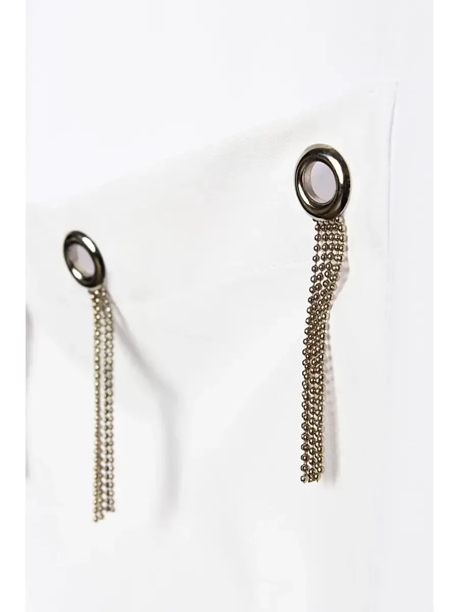 White Oversize Shirt with Large Pockets and Bird's Eye Pattern