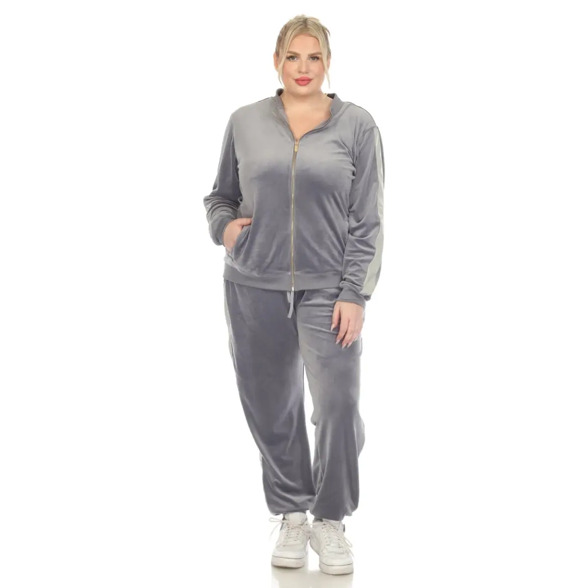 Welcome to the White Mark Women's 2-Piece Velvet Long Sleeve Tracksuit Set, crafted from your favorite super-soft velvet fabric and known for its amazing fit! This beloved classic has been redesigned with a stylish twist. The famous White Mark Women's Best-Selling 2-Piece Velvet Set now features a completely new look with added 100% PU Leather details on the side panels. Add a new variation to your velvet collection with the new bomber-style velvet jacket and classic jogger pants. The super-soft jacket features a zipper closure, a simple round neck, and two (2) pockets to hold your small belongings. The comfortable jogger pants feature an adjustable drawstring elastic waistband, ribbed cuffs, and two side pockets. You can wear it as a set or combine it with other pieces to achieve a comfortable and sporty chic look. This luxurious and comfortable set is ideal for everyday use; it will keep you looking stylish and comfortable while shopping, relaxing after sports, or meeting friends. Made with high-quality materials and meticulous craftsmanship, this set will give you long-lasting enjoyment. It will keep you warm and comfortable in cold weather, while its stylish design will reflect your style. Treat yourself and feel special every moment with this amazing velvet set.