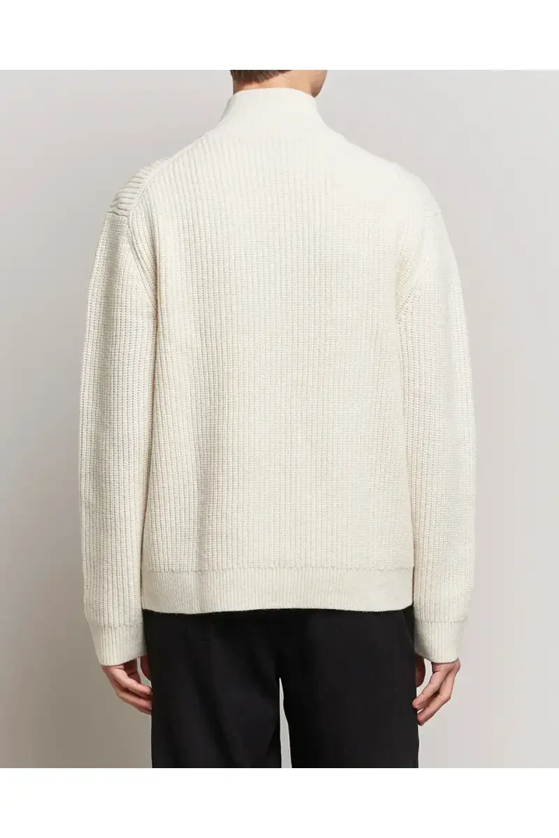 White Oversize Zippered Fisherman Men's Knitted Sweater