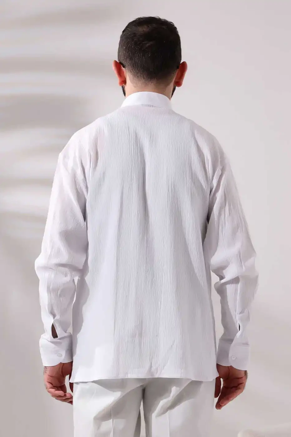 White Poplar Men's Relaxed Fit Clergy Collar Gauze Hac Ve Umre Shirt is designed to provide both comfort and style during your Hajj and Umrah pilgrimages. Made from 100% cotton gauze fabric, this shirt is perfect for summer as it keeps you cool and sweat-free. Its loose fit provides all-day comfort and does not cling to the body.
