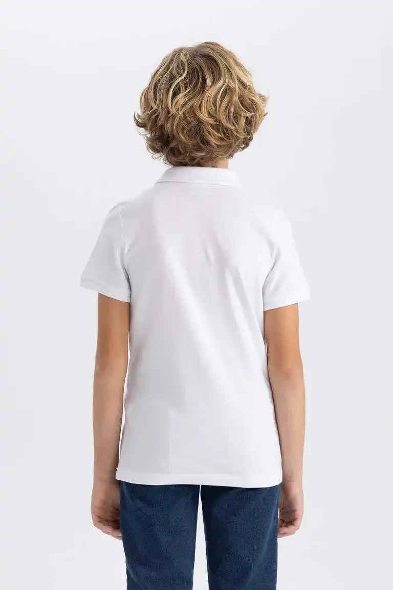 Meet the boys' polo shirt made of breathable, soft pique fabric, a must-have for summer! This shirt will ensure your child looks comfortable and stylish all day long. Its sleek white color will go perfectly with any outfit. The short sleeve design offers freedom of movement, allowing your child to play and have fun.