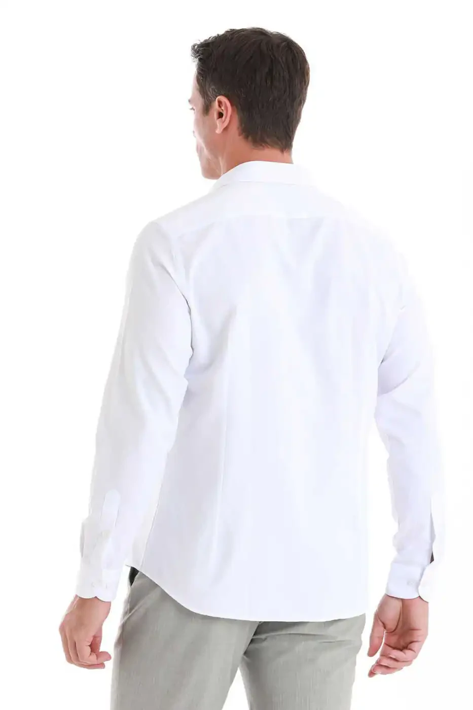 The White Slim Fit Patterned Slim Collar Cotton Long Sleeve Shirt is a must-have piece in the wardrobe of modern and stylish men. Thanks to its slim fit cut, it fits the body but offers all-day comfort with its structure that does not restrict your freedom of movement. The white color of the shirt adapts to all kinds of combinations and highlights your elegance. The elegant patterns on it add a different touch to the shirt, allowing you to move away from the ordinary. The slim collar detail offers a modern and dynamic look, while the long-sleeved design allows you to make both classic and sporty combinations. The cotton fabric allows your skin to breathe and prevents sweating, so you feel comfortable all day long. Whether it's a business meeting, a special invitation, or daily use, this shirt always gives you a stylish and well-groomed look. Express your style and make a difference in every environment you enter with the White Slim Fit Patterned Slim Collar Cotton Long Sleeve Shirt. The fabric quality of the shirt ensures long-lasting use, while its easy-to-iron feature saves you time. This shirt, which is poised to be one of the most used pieces in your closet, will more than meet your expectations by offering elegance and comfort together. In short, the White Slim Fit Patterned Slim Collar Cotton Long Sleeve Shirt is both a stylish and practical choice. This shirt, which meets the needs of the modern man, will be an indispensable part of your wardrobe.