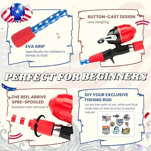 • Oson o'rnatish va ishlatish: teleskopik baliq ovlash dastasi va oldindan o'ralgan g'altak dizayni tufayli bolalar darhol baliq ovlashni boshlashlari mumkin.
