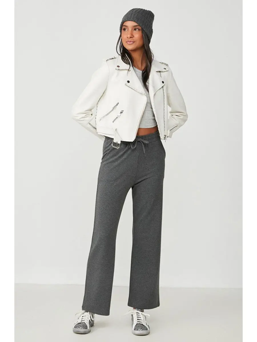 Offering freedom of movement with its flexible structure, the Wide Leg Flare Sweatpants combine elegance and comfort. It provides a modern look with its high-waisted cut and flared model, and easily adapts to any combination with its anthracite color. This sweatpants, which you can easily prefer for sports activities as well as daily use, will be one of the indispensable parts of your wardrobe. The size on the model is S/36. Model measurements: Height: 1.76, Bust: 84, Waist: 60, Hips: 90. Colors may vary due to light differences in studio shots. It offers comfort all day long thanks to its cotton-blend fabric.Product DescriptionWide Leg Flare Sweatpants 736 Anthracite-Anthracite is the perfect choice for women looking for a modern and comfortable style. These sweatpants offer freedom of movement throughout the day thanks to their flexible structure, while their stylish design allows you to stand out in any environment. The high-waisted cut gently shapes your body lines, while the flared model makes your legs look longer and thinner. The timeless elegance of anthracite color offers the possibility to be easily combined with different colors and styles of outerwear. You will not be able to give up the comfort and elegance of these sweatpants, whether you are doing your daily activities, doing sports or relaxing at home. Its cotton-blend fabric allows your skin to breathe and prevents sweating, keeping you feeling fresh all day long. Thanks to its durable structure, it offers long-lasting use. Wide Leg Flare Sweatpants is a candidate to be one of the most loved pieces of your wardrobe! Take your style to the next level with these sweatpants that offer both comfort and elegance. The size on the model is S/36. Model measurements: Height: 1.76, Bust: 84, Waist: 60, Hips: 90. Colors may vary due to light differences in studio shots. It offers long-lasting use thanks to its fabric content and stitching quality. These sweatpants are not just a piece of clothing, but also an expression of a lifestyle. Feel good anytime and anywhere with these sweatpants, which are the choice of self-caring women who seek elegance and comfort together. Anthracite color allows you to reflect your personal style by easily matching with different accessories and shoes. Whether you get a sporty look with sneakers, or create a more elegant style with a stylish blouse and heels, Wide Leg Flare Sweatpants will perfectly complement any combination. These sweatpants are a practical and stylish option that adapts to the dynamic lifestyle of the modern woman. Ideal for both daily use and special moments, this piece will be the indispensable of your wardrobe.Product Features* Flexible structure* Freedom of movement* High waist cut* Flare model* Anthracite color* Suitable for daily use and sports activities* Cotton-blend fabric* The size on the model is S/36* Model measurements: Height: 1.76, Bust: 84, Waist: 60, Hips: 90* Colors may vary due to light differences in studio shotsAdditional InformationIt offers comfort all day long thanks to its cotton-blend fabric. Follow the washing instructions for long-lasting use. Wash with similar colors and iron at low temperature to protect the color and texture of the product. Do not use bleach.