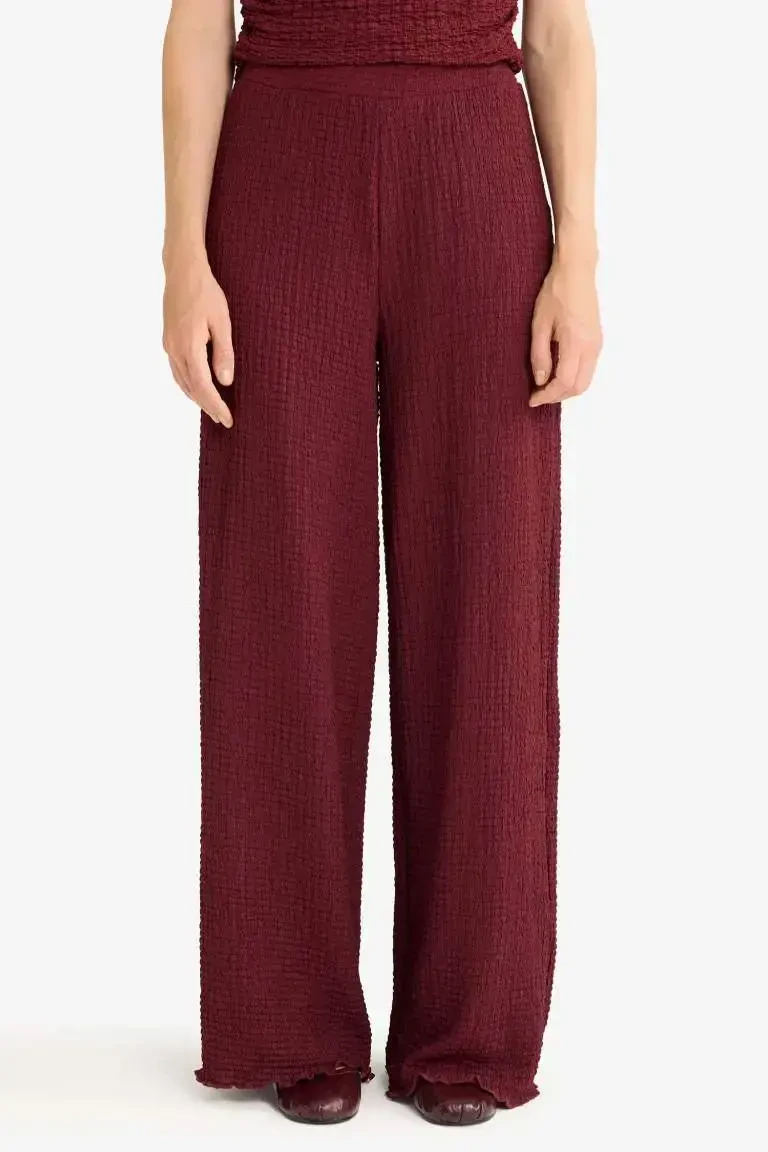 Wide Leg Pantolon, Bol Paça Pantolon, Bürümcük Pantolon, Bordo Pantolon, Kadın Pantolon, Rahat Pantolon, Şık Pantolon, Ütü Gerektirmeyen Pantolon, Geniş Paça Pantolon, Yazlık Pantolon